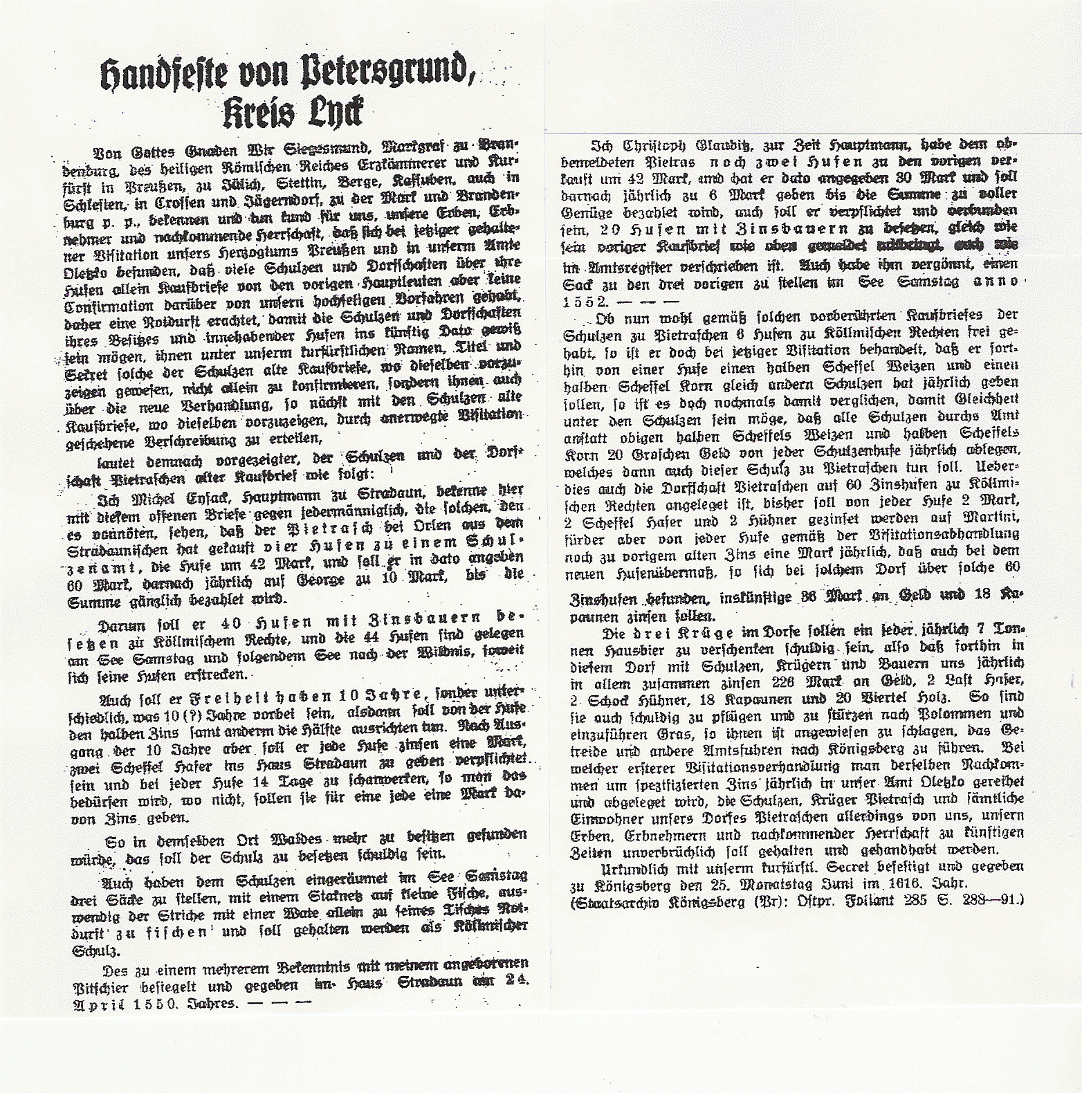 Gründungsurkunde von Pietraschen